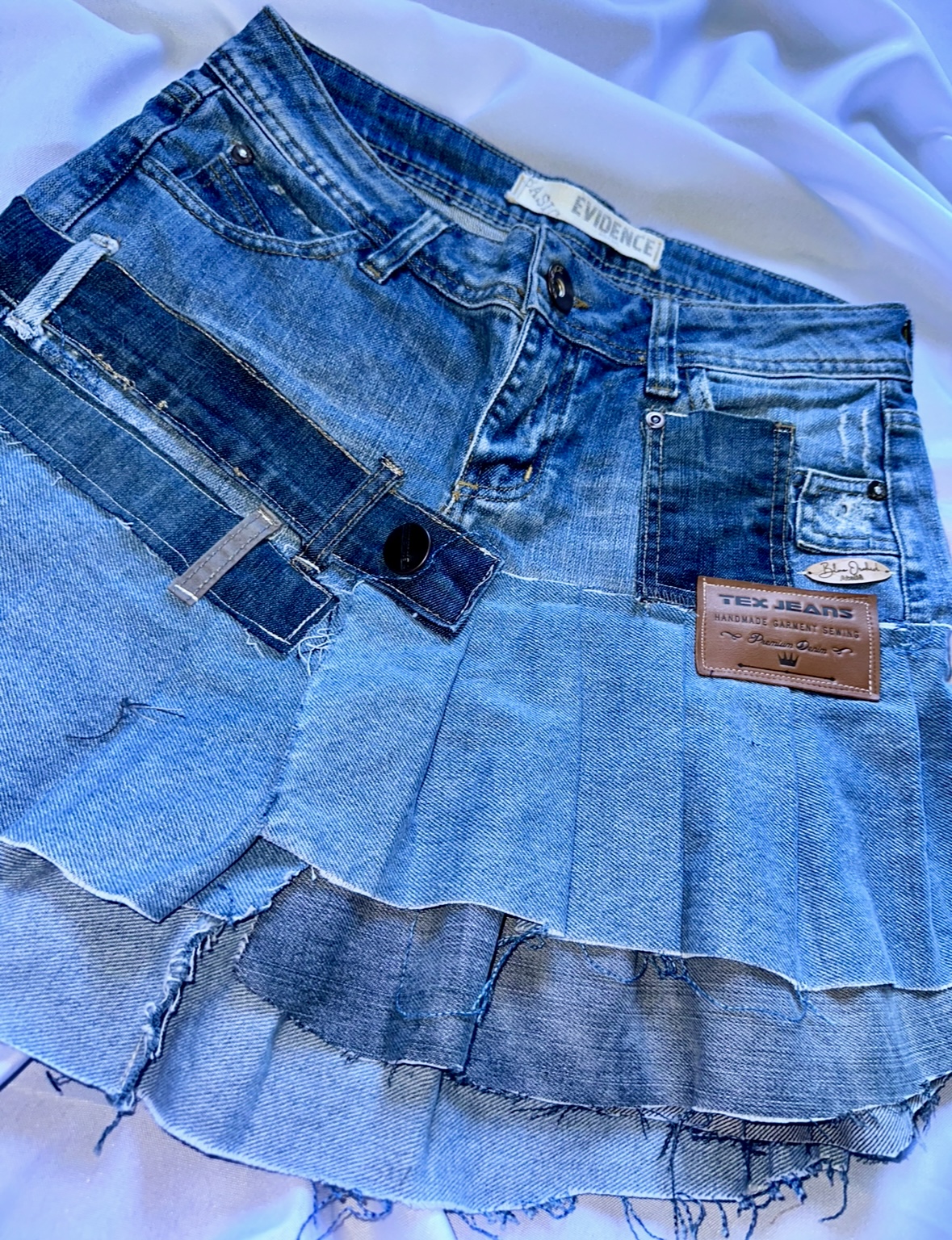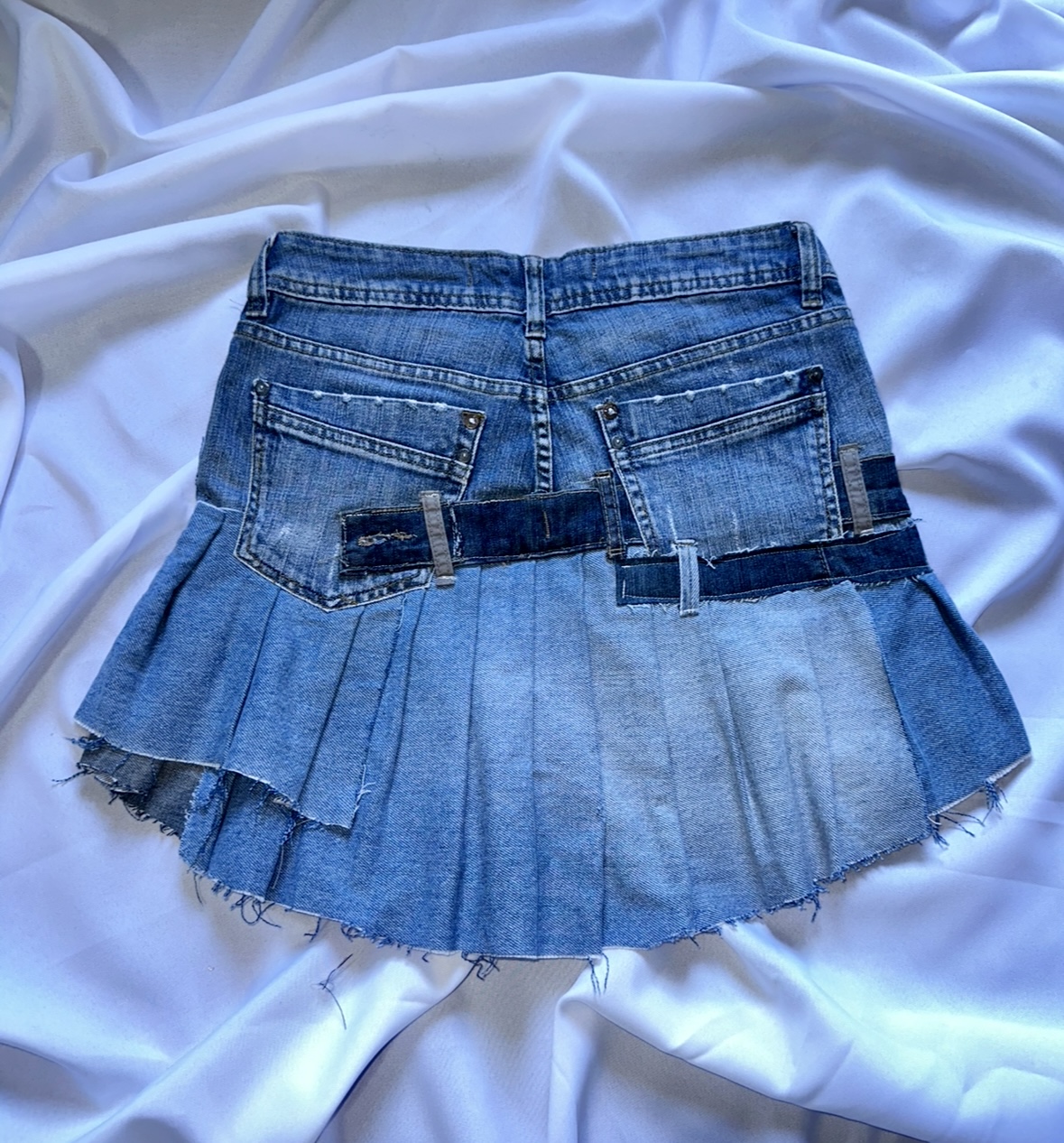 Saia Jeans Upcycle reutilizando uma calça;